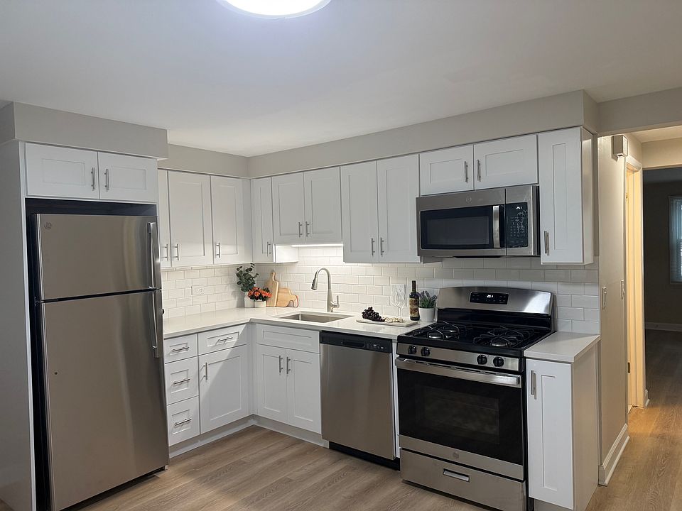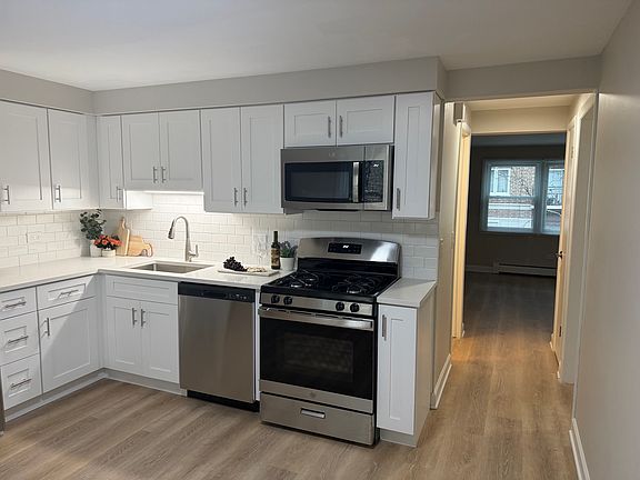 BRAND NEW EVERYTHING. Recently renovated 2rd floor unit is ready to move in! This beautiful one bedroom unit has been fully rehabbed with laminate flooring, new stainless steel appliances including gas stove, built in microwave, dishwasher and refrigerator plus quartz countertops. Bathroom has brand new vanity, flooring, toilet, shower tiles and lighting.
