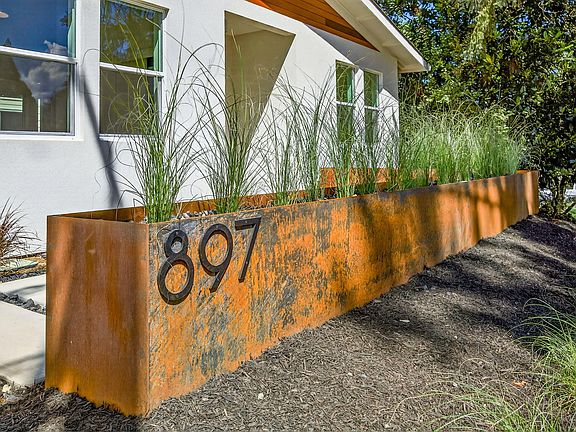 Architecturally inspired new construction with midcentury vibes on a hard to find level .18 acre lot. This custom 3 bed, 2 bath home with office wraps around a window-filled atrium that floods the living spaces with light. The kitchen offers a large island with eating bar and opens to a bright great room with tall ceilings, custom built window package, and fireplace with brick surround. The primary suite bath features floor to ceiling tile, a roll-in shower, and floating double vanity. Built by Suncrest Homes, a trusted Ashland builder with over 35 years of experience, this Earth Advantage home delivers energy efficiency, healthier air, and exceeds standard building code. Exterior details include clean elevations with clear vertical grain cedar and stucco, tailor-made steel planters that frame the entry, covered porches, an outdoor gas fire pit, and drip irrigated raised beds with potting station. Set among mature trees with fresh landscaping, this home balances design and lifestyle