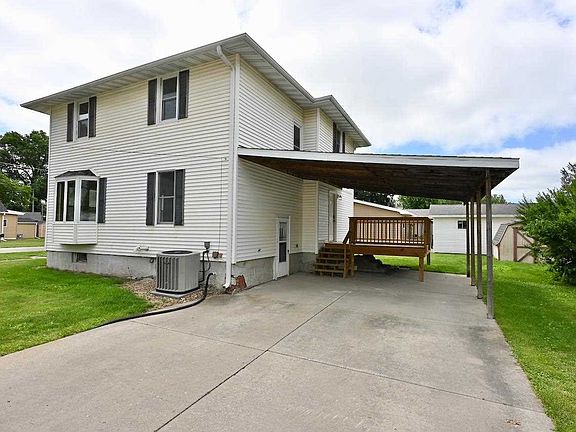 Step inside this beautifully updated home on a corner lot in Marengo! The large living room and sitting area with cased opening features a bay window and ample natural light. Continue through, and you'll find a bright dining space with updated flooring that opens to a new kitchen with peninsula. The kitchen also features a convenient laundry closet--no carrying baskets to the basement in this home! Upstairs, you'll find three generously sized bedrooms and a central hallway with ample storage space. The updated family bath features modern fixtures and a large bathtub with shower. Outside, the corner lot offers plenty of room, while the large deck shares partial coverage with the included carport. Tons of fresh finishes inside, including new carpet in the living room, plus a new roof in 2024, updated water heater in 2020 and modern, zoned HVAC check off major boxes! Come tour this wonderfully maintained home and see why Marengo is the perfect place to call home!