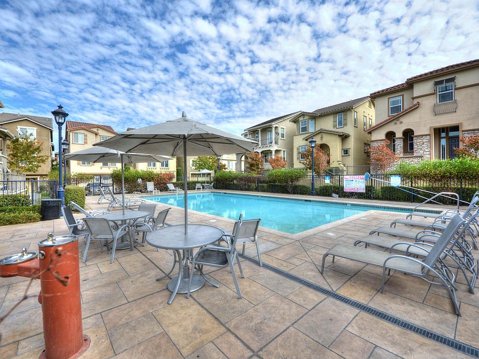 Captivating and Stunning This beautiful newly painted Town home with lots of upgrades, added storage shows like a model. Spacious open plan Great room with gleaming hickory hardwood floors and recess lighting, Updated kitchen with raised panel maple cabinets and granite ctr top, Spacious master bedroom, Master bath with dual sink Corian ctr top, All bedrooms with ceiling fans, Bonus room with Laundry,Gated Community pool, SPA, club house, Tennis courts, Easy access to 880, 237, 680, close to future BART.