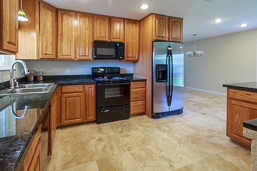Completely remodeled. All new 200 amp service. New electric wiring and plumbing. New Roof, New central heat and air system. Indoor laundry room. Granite counter tops and Travertine floors in bathrooms, kitchen, entry, and dining room.