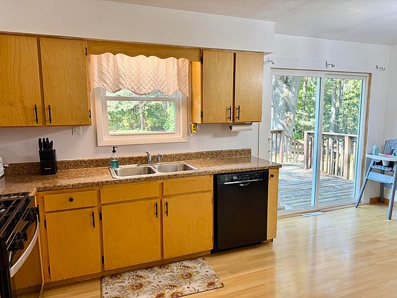 Move-in ready 3-bedroom ranch situated on a spacious and private lot. Spread out with this move in ready home with immediate possession on a quiet dead end street and large .82 acre lot. The main floor features a well-equipped kitchen with newer stainless steel appliances, and dining area with slider out to the deck overlooking the beautifully secluded backyard. Updated bathroom and flooring. The basement includes an egress window, offering the potential to add a fourth bedroom or create a finished recreational space. The oversized two-car garage is a handyman's dream—complete with a workbench and built-in cabinets. Separate shed provides convenient storage for lawn equipment. The home has been updated with newer windows throughout, doors, and sliding glass door, helping to improve energy efficiency and reduce heating and cooling costs. Buyer to verify all listing information.