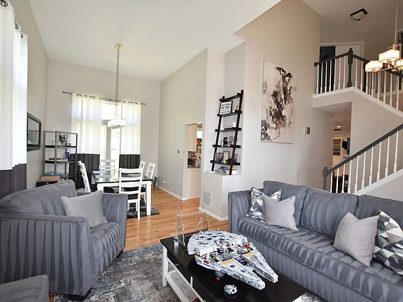 Welcome Home! You will fall in love with this gorgeous, light filled 2-story home with vaulted ceilings and a wonderful floor plan perfect for entertaining. The two-story entry, large living room and formal room are sure to please. There is beautiful wood flooring throughout most of the first floor. The impressive eat-in kitchen is open to the family room, and offers a center island, granite counters, SS appliances, breakfast bar, backsplash, a large pantry closet and a door to the deck and private back yard. The family room offers a custom built-in entertainment cabinet & beautiful WBFP. You are sure appreciate the conveniently located 1st floor powder room and laundry room. There are four nice size bedrooms on the 2nd floor, all with good closet space. The huge master bedroom offers vaulted ceiling, a walk-in closet and spacious private bath with a vanity with double sinks and a large shower. The hall bath has vanity with double sinks and a bathtub. The awesome finished basement has a gigantic recreation room, 5th bedroom with closet, arcade room, new beautiful full bathroom with large shower, and a storage room. The two-car attached garage has a smart garage door opener (2022). Many rooms are equipped with smart lights and can be controlled by Google and Alexa! This home is loaded with recent updates - thermostat (2023); furnace, water heater, kitchen faucet, dishwasher, sump pump (all 2022); new basement bath, recessed lighting, ceiling fans (2021). This home has it all and is ready for new owners to enjoy!