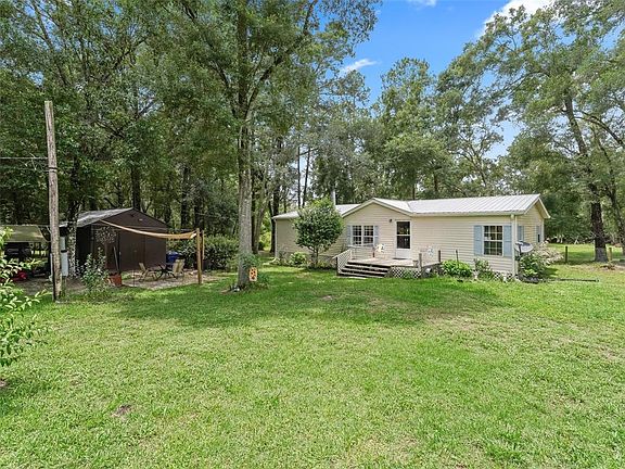 ***Motivated Seller*** ALL Offers will be considered. Escape to peaceful country living on your own acre of land just minutes from the Withlacoochee River. This well-kept mobile home offers peace of mind with a metal roof (installed in 2019), a new drain field this year, and a Leaf Filter gutter system with a transferable warranty. Inside, you’ll find a cozy kitchen with a built-in booth, perfect for morning coffee with a great view of your backyard pond. The split bedroom home is clean and ready for new owners to love it. The fireplace in the living room makes for a cozy setting, encouraging everyone to gather. Screened in back porch will be one of your favorite spots overlooking beautiful grounds. Out front is a shed, perfect for your gardening equipment and what nots. There are several public boat ramps close by, making those afternoon boat rides more possible without the "river front" price tag. Outside, enjoy colorful flowers blooming all around your yard — no flood zone, no HOA, just freedom to enjoy your space as you wish. Bring your boat, your toys, and your dreams — this slice of Florida is ready for you!
