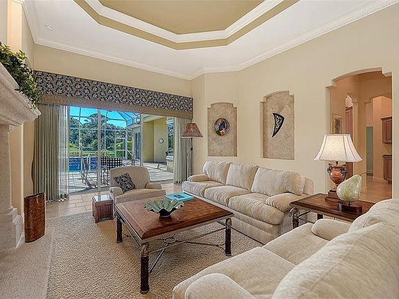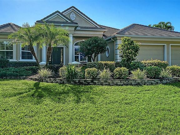 Architectural elegance abounds in this Todd Johnston custom built home in popular Silver Oak on Palmer Ranch. Nearly 4,000 sq. ft. all on 1 floor. This home boasts of 4 bedrooms (one is a guest suite with private bath) 2 offices & 3.5 baths. Located on a private water front lot this executive pool home includes a new pool heater in 2022 with built in spa on expansive lanai & out door kitchen. Extensive use of popular brick pattern tile in the main living area with wood floors in the office & guest bedroom. 2 new AC systems smaller one replaced in 2019 & larger unit replaced in 2022.The sellers have replaced some of the windows with impact glass. Beautiful stone front gas fireplace in the living room. Upgrades to please the most discriminating buyer. Gourmet kitchen with wood cabinets, granite counters stainless appliances new gas cook-top. Seller to install new tile roof at seller's expense. The 3 car garage has an added 3 ft. in depth extension for additional storage. Silver Oak is located on Palmer Ranch close to shopping, Legacy Trail & minutes to world famous Siesta Key Beach. All homes in Silver Oak were built by Sarasota's highest rated custom home builders.