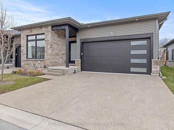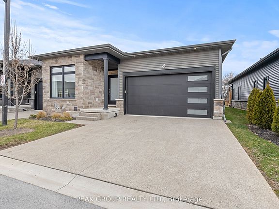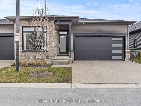 Introducing 8-8974 Willoughby Drive, your dream home just minutes away from the picturesque Niagara Parkway, the renowned Legends Golf Course, and the breathtaking Niagara Falls. This exquisite end-unit bungalow townhome, by the award-winning Silvergate Homes, features three spacious bedrooms and three full bathrooms, along with a fully finished basement and a host of impressive upgrades. As you enter, you are welcomed by bright, airy interiors accentuated by large windows, nine-foot ceilings, and elegant eight-foot doors. The main floor is upgraded with engineered hardwood flooring and luxurious quartz countertops, while the bathrooms impress with designer vanities, exquisite finishes, and beautiful tile selections. The thoughtfully designed kitchen is a chef's delight, offering ample cabinet space, a large island with seating for four, an under-mount sink, a gas range, and soft-close ceiling-height cabinets adorned with high-end stainless steel appliances. The open-concept layout seamlessly connects the kitchen to the great room and dining area, making it an entertainer's paradise. Retreat to the primary bedroom, a luxurious haven complete with a five-piece ensuite featuring a glass shower and a generous walk-in closet. A custom oak railing staircase leads you down to the fully finished basement, which includes a spacious recreation room, custom flooring, an additional bedroom, a modern bathroom with a glass and tile shower, and a stylish custom wet bar with a wine fridge perfect for entertaining and convenience. Storage is abundant, with plenty of closet space, a large unfinished mechanical room, and a cold cellar.Additional highlights of this remarkable townhome include an elegant tile inlay at the entryway, a two car garage with EV rough-in, a complete central vacuum rough-in, main floor laundry, and a main floor walkout to a covered back deck with an upgraded exposed aggregate concrete patio pad perfect for summer barbecues or relaxing with friends and family.