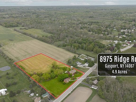 Welcome to 8975 Ridge Road in Gasport. This spacious 5 bedroom / 2 full bathroom home sits on 4.9 Acres. There is a primary suite with full bathroom on the first floor. Key features include large kitchen, formal dining room, first floor laundry and enclosed front porch. The exterior is Brick and Vinyl siding with a new metal roof. New Hot Water Tank. There is a tremendous potential with this home.