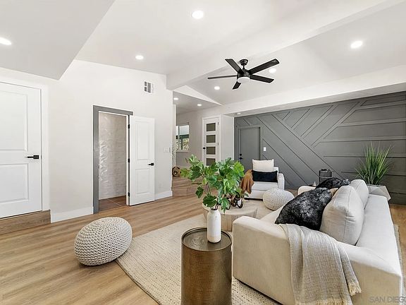 Prestigiously situated in the highly desired Serra Mesa community, this meticulously remodeled 4 bed, 2.5 bath home with a vaulted ceiling great room, new roof, and a custom-tiled private entrance corridor is all you could ever imagine. Complete with a top-to-bottom remodel, this gorgeous home presents designer luxury vinyl flooring, new windows, stainless steel appliances, euro-luxe soft-close cabinets, quartz countertops, custom tile work in kitchens and bathrooms, and exterior, new drought landscaping with succulents and turf and so much more. This beauty is a newly imagined perspective in this classic San Diego community, centrally located to freeways, schools, shopping, and dining. Start your next chapter in a home that truly pays testament to humble design and practical functionality.
