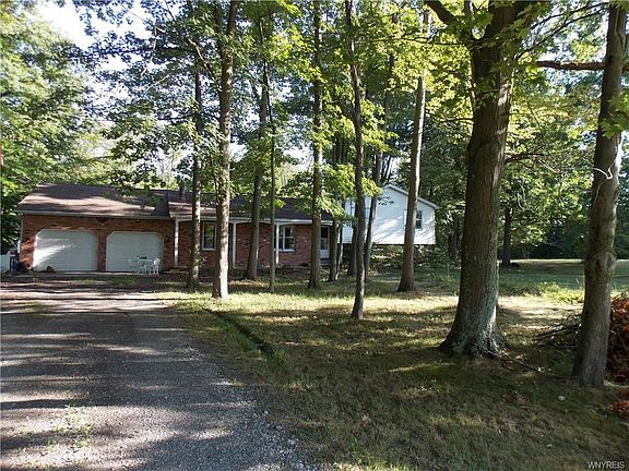 This 2500 square foot home sits on a Beautiful private 2.4 acre lot on a peaceful Clarence Center road. Come roll up your sleeves and bring your ideas to make this your dream home! This home features 3 bedrooms plus a possibility of a 4th and 2 full and one half baths. Great room sizes along with a finished basement with kitchenette, den and office areas plus second full bath and a bilco door out the the back yard. The two plus attached garage has workshop area and plenty of storage. Drive way has circular turn around area. So much to offer here.Wood stove in living room is excluded. Property being sold in as is condition to settle estate, seller unable to do and repairs. Showings begin immediately, negotiation begin 9/16/20 at noon.