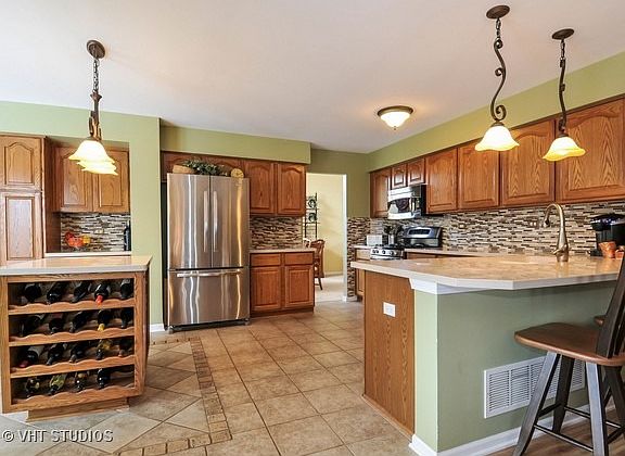 THIS GORGEOUS BRIGHT 4 BR, 2.1 BA HOME BACKS TO A FOREST PRESERVE FOR TOTAL PRIVACY WHEN ENJOYING THE PAVER PATIO OR DECK OFF THE HUGE EAT IN KITCHEN. SS APPLIANCES, CORIAN COUNTERS, ISLAND, BREAKFAST BAR, TONS OF CABINETS. KITCHEN OPENS TO THE FAMILY ROOM WITH HARDWOOD AND GAS FIREPLACE, 1ST FL LAUNDRY, MBR HAS VAULTED CEILING, 2 WIC, LG MBA WITH SOAKER TUB, SEP SHOWER. FINISHED BASEMENT HAS LG REC ROOM W/SEPARATE OFC AREA AND LG STORAGE ROOM. PROFESSIONAL LANDSCAPING, PAVER WALK. THE WARM AND INVITING FINISHES, UPDATED FIXTURES, LOTS OF LIGHT AND WITH 3500 SQ FT OF FINISHED LIVING SPACE MAKE THIS A WONDERFUL HOME.