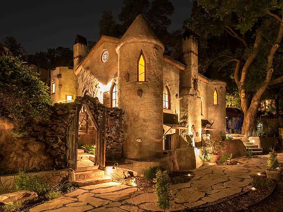This newly restored Hollywood Hills castle is quiet and serene, surrounded by ancient oaks and flowering bougainvillea--a perfect yet rare example of 1920s filmic storybook architecture. Complete with pool, spa, fire pit, exclusive gardens and courtyards, a marble steam shower, modern kitchen, 3 fireplaces, and heated bidet toilets. Sitting on nearly four lots of land, the home has unique features, such as exterior caves, a stone tunnel, and a stone bridge that overlooks the pool. It truly is a serene oasis tucked away in the hills of West Hollywood. Contact me for more details on the property.
