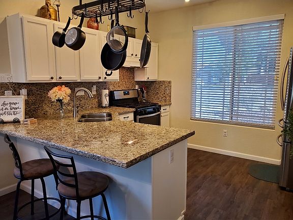 This house is perfect for a small family, located on a cul-de-sac, in a wonderful neighborhood near Lions Park, and just a walk away from Liberty Middle School. The house comes with solar panels and a water-efficient front yard. The kitchen has custom granite countertops and updated bathrooms. The back yard features, a small patio, and a fenced-in dog run.
