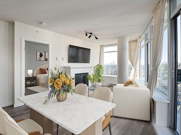 Sky-high living in the heart of New West! Welcome to the 31st floor corner unit at the Azure I, where luxury meets convenience in vibrant downtown New Westminster. This 2-bedroom, 2-bathroom unit offers an open-concept layout, stainless steel appliances, and a spacious balcony boasting views of the city, Fraser River, and Mt. Baker. Just steps from the SkyTrain, dining, and shopping, this is a great opportunity for homeowners or investors. Includes 1 parking stall and 1 storage locker with building amenities. Pet-friendly and rentals allowed.