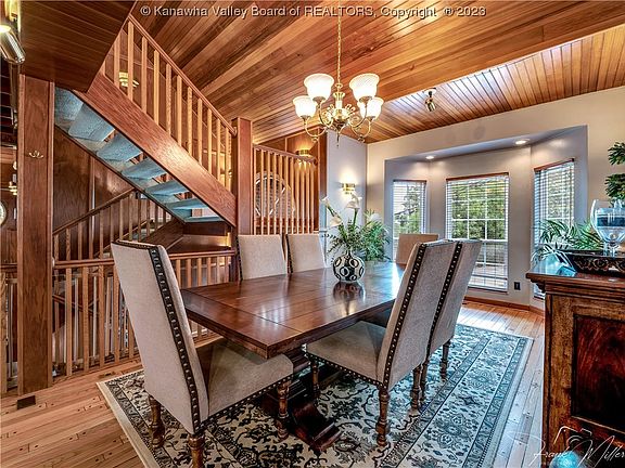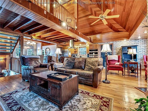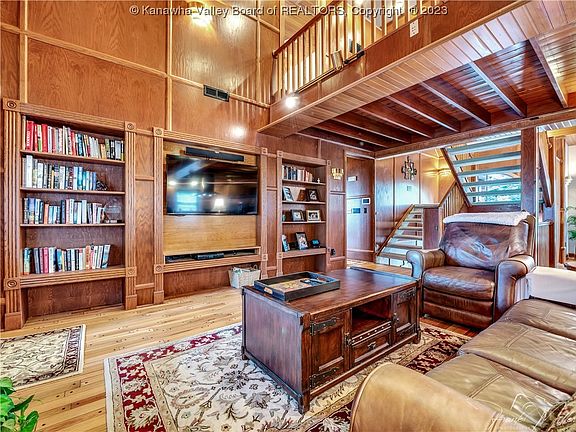 This is a unique house that isn't available everyday! 4 bedrooms, 4 baths, 4 car garage. Enjoy the warm feeling of the West Virginia wood surrounding you in this lovely home. The main living area is an open concept with a high wood ceiling. 3 bedrooms and 2 bathrooms are on the main level. A private bedroom suite is on the upper level with a full bathroom. The lower level boast tall ceilings, a tile floor, a full bathroom and a kitchenette.