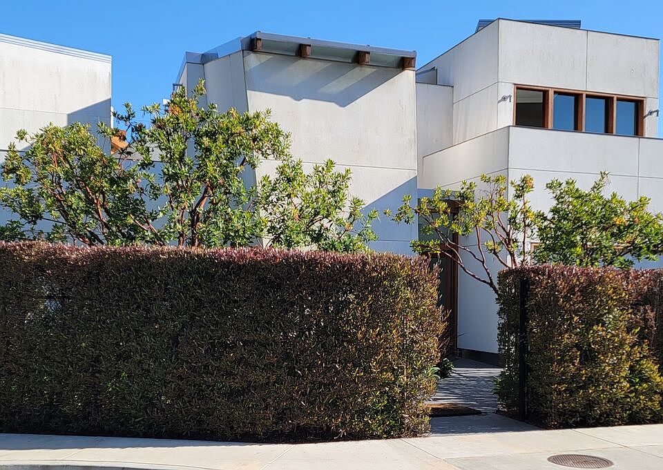 Back on the Market with new pricing. The John Baldessari Gallery Residence, 2018, Frank O. Gehry, CC, FAIA. John Baldessari and Frank Gehry! As impossible to pigeonhole a style of these giants of art and architecture, so it is with their collaboration on John's own home, the model of which was featured center at LACMA's Frank Gehry Retrospective. It's modern, of course, and constructed of the finest materials and accessories available, but in understanding the work, and its success, these terms seem almost irrelevant. It is probably best described in terms of function.Frank and John were friends. From stories about John, one can imagine a request that may have gone like this: Frank, I'm tired of traipsing up and down stairs every time I want something from the kitchen. I want my bedroom to be just steps from everything: my art, my library, the kitchen, and an outdoor place where I can enjoy a cigar, a glass of wine, and a view of the golf course next door. Frank achieved these requirements by pinwheeling the living space and gallery around a cloistered heptagonal courtyard, thus referencing, if not by shape, the program of the early California Missions. Reversing tradition, the master bedroom is on the ground floor, while the guest bedrooms are on the second floor. An elevator contiguous to the master bedroom ascends to the rooftop patios with golf course and city vistas.