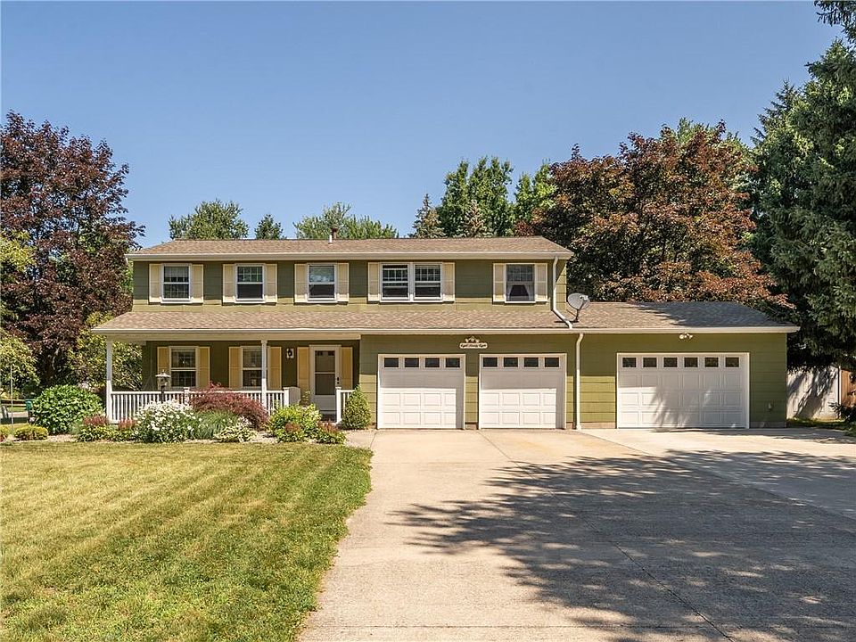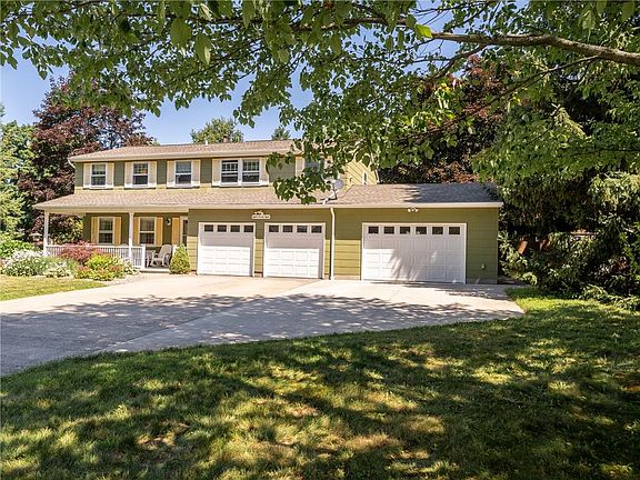 AMAZING 5 bed/ 2.5 bath traditional Colonial tucked away in a lovely Webster neighborhood is just what you are looking for! Welcoming covered front porch features a good old fashioned porch swing. Stunning (Oak) hardwood floors in formal living & dining rooms. The kitchen has cherry cabinetry, large work area (easily converted to a breakfast bar) & (some) Corian counters, built in oven, surface cooktop, & more! Spend time in the fam room, cozy up to the gas FP (w/remote controlled operation). Updates: recessed lighting & surround sound! 2nd floor Owner's suite, has access to the laundry. Possible, Guest, 2nd Owners, or Teen Suite offers direct access to a large bath as well. The finished basement provides addl. sq. ft., perfect for a media, game, or 2nd family room. Make time to relax in the indoor SPA room, featuring a 14-person swim spa. Private retreat in your own back yard & spend time w/ family & friends on the patio or cool off in the in-ground pool. Some indoor/outdoor furntiture are avail & neg, just ask! Whole House Generator- Greenlight Internet Service avail. So many amenities to consider