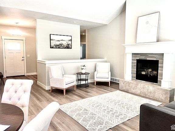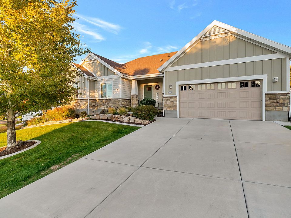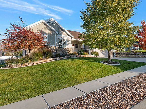 Welcome to beautiful Elk Ridge, Utah! This beautiful home in the highly sought after Traditions subdivision sits on a large .37 acre lot in a serene neighborhood. Enjoy majestic views of beautiful Mount Loafer, Utah Lake and the Utah County skyline. This spacious and well designed rambler features 9 foot ceilings on both the main and basement floors. Additional vaults on the main floor give the home a grand feel. This home is light and airy inside and features, granite countertops, plantation shutters throughout the main floor, a gas log fireplace, full tile kitchen backsplash, gas range, double sinks in the full baths, recently upgraded carpet throughout, waterproof LVP flooring and a radon mitigation system for your family's safety. The fully landscaped yard includes a large concrete patio, a fully enclosed vegetable garden with full auto drip system and mature fruit trees ( 2 apple, 2 peach, 2 apricot and a cherry tree.) This gorgeous home is move-in ready, so don't miss out on this one!! Schedule your private showing today.