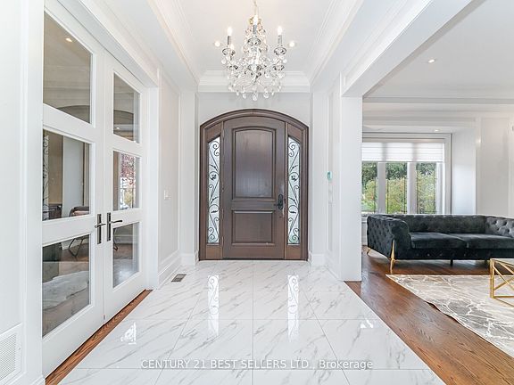 A new era of luxury, Steps to the LAKE Ontario! over 5,500 Sqft with its abundant light, lavish amenities, and designer touches, this beauty will captivate your heart. Elegance and sophistication is quickly recognized upon pulling into the 10-car driveway with stone interlocking. Finely Crafted Living Space, Offering: High Ceilings, Exquisite Foyer, Executive Office, Designer Kitchen W/Panoramic View Of Backyard Oasis, Breakfast Area, Great Room With Coffered Ceilings, built in Speaker & Walk Out. The kitchen is the epitome of culinary excellence with granite countertops, JENNAIR appliances, and a butler's servery that seamlessly integrates the kitchen to the formal dining and living areas - perfect for those sophisticated soirees. Retreat To Master Suite With Balcony, Sitting Area And Double Sided Gas Fireplace, Spa Inspired Ensuite with heated floors & Large W/I Closet. The Finished Lower Level Includes A Recreation Room With A Marble Fireplace, Wet Bar, a Private Cinema with built-in sound system, 5th Bedroom, And Spa-Like 2 Bath. Beautifully landscaped backyard with large composite deck. Peace and privacy are guaranteed with a single entry point.