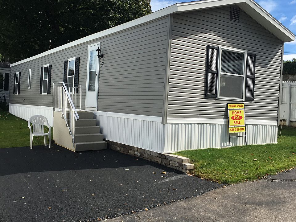 Single Wide Mobile Home located in highly desirable Sunset Valley Manufactured Home Community, 898 Ridge Road, Lot # 51, Webster, NY. This newly renovated manufactured ranch-style home features 2 bedrooms, 1 bathroom, and large living room open to a eat in kitchen. Many renovations such as new carpet, new vinyl flooring, and fresh paint. Also includes brand new GE Stove & Refrigerator. Convenient to shopping, dining, medical facilities and a short drive to the shores of Lake Ontario and Irondequoit Bay. Sunset Valley is a 55+ community nestled in a safe and peaceful setting. Asking only $29,900. Or best offer. Looking to sell ASAP. www.sunsetvalleycommunity.com Please call (585) 381-2114.