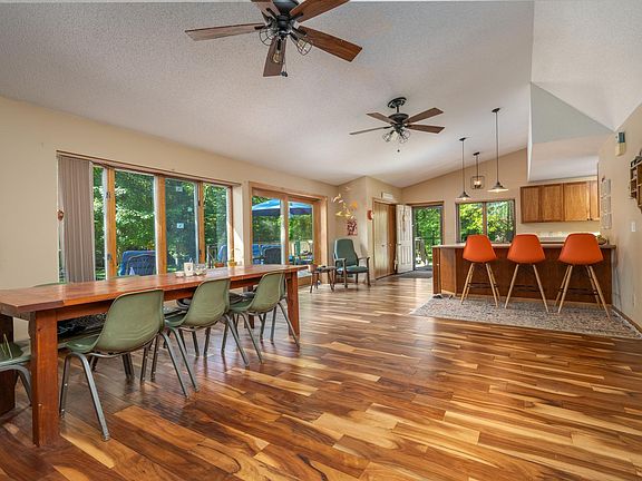 Nearly 3,000 sq. ft. home on 4+ wooded acres with 437’ of frontage on the Apple River Flowage! This 4-bedroom, 4-bath retreat offers a peaceful paradise surrounded by wildlife. The open-concept floor plan flows seamlessly to a spacious, multi-level deck spanning over 1,000 sq. ft., along with an inviting enclosed porch—perfect spots to relax and take in the scenery. The Apple River Flowage is a 4-mile stretch known for excellent fishing and an amazing nearby swimming hole, making it a true recreational gem. Inside, the fireplace adds warmth and ambiance to your dining experience. The lower level offers tremendous potential for expansion, with plumbing roughed in for 2 additional bathrooms. Once finished, the basement could nearly double the home’s square footage, adding even more value and versatility including great potential for a vacation rental. Just minutes north of Amery, this property combines comfort, privacy, and natural beauty in one stunning package.