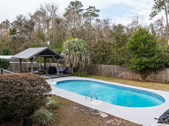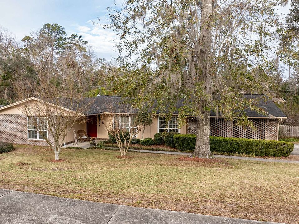 Welcome to this beautiful 3-bedroom, 2.5-bathroom brick home, located on a serene .75-acre lot in desirable North Florida. Boasting 2,270 square feet of living space, this home offers the perfect combination of classic charm and modern updates. NO HOA and NOT IN A FLOOD ZONE. Recent upgrades include a 12-year-old roof, brand-new HVAC unit (2024), new refrigerator (2025), new dishwasher (2025) and new microwave (2025) ensuring comfort and peace of mind for years to! Inside, the open-concept kitchen is a true standout, featuring an island, gleaming granite countertops, and stainless-steel appliances—ideal for both casual meals and gourmet cooking. The bonus room off the kitchen provides extra space for a home office, playroom, or additional living area. Natural gas powers the stove and cozy fireplace, adding both convenience and warmth to the home. The spacious master suite offers a private retreat, with a full ensuite bath. The additional bedrooms are generously sized and share access to well-appointed bathrooms. Enjoy the practicality of a half bath for guests as well. Step outside to your own private oasis! The saltwater pool invites relaxation, while the large lanai offers an ideal space for outdoor dining or lounging. There's even a back open deck perfect for grilling or sunbathing. Whether you’re entertaining or unwinding, this outdoor space has it all. This home offers the perfect balance of comfort, style, and outdoor living, don't miss your chance to make it yours!