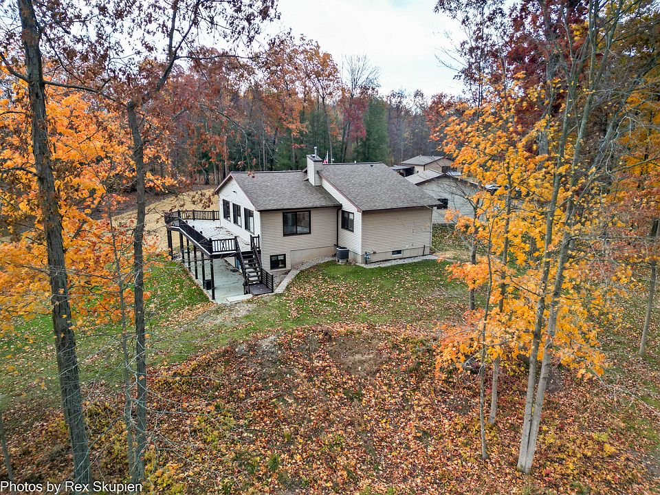 Attention Outdoor Enthusiast! Check out this slice of Heaven located in southern newaygo County walking distance to Englewright Lake and just a few miles to US131 exit 104 making a commute to Grand Rapids or Big Rapids a dream. This property boasts 17 acres of beautiful rolling hills along with two ponds and a creak that meanders thru the front yard. There is a two-stall detached garage and a 30x40 pole barn to store all your toys in. Long concrete driveway takes you along the manicured lawn over a small bridge and perched on top of that bluff is a lovely ranch style home. Large wrap around deck will great you at the back door. Stepping inside this ranch home you will appreciate the large entry way with plenty of storage. Large, vaulted ceilings with open concept design in the family room dinning and kitchen. Large windows to let in all the natural light not to mention spectacular views from every window. The main floor also has 2 good size bedrooms and a full bathroom. In the finished lower level there is another living area with a full kitchen full bathroom family room and an additional bedroom. This home has been meticulously maintained since it was built in 1989. There is new carpet on the main level and in 2019 a new roof was installed along with a new NATURAL GAS furnace. In October of 2025 a new drain field was installed. The home is wired for a generator and has a water softener that is owned.