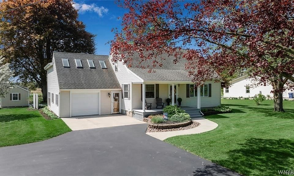 Absolutely immaculate 3 bed, 2 full bath Country Cape in Royalton-Hartland School District on 2.2 acres. Upon entering you're greeted with the entrance to an expansive family room with skylights, hardwood floors & wood stove. Eat-in kitchen, formal dining room, beautifully remodeled first-floor bath & master bed w/ massive walk-in closet. En suite second-floor updated bath. Partially finished basement with workshop. One bay attached garage and back sunroom leading to 4+ car detached barn (with heat, water, & covered patio), ramada, and a getaway shed surrounded by garden beds & hardscape. All of this overlooking seemingly infinite Niagara County Countryside. This thoroughly manicured home and grounds check all the boxes on your wish list.