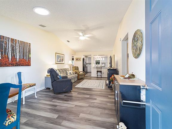 Updated and Move-In Ready Furnished Home in On Top of the World! This beautifully updated home features a 2020 kitchen with beautiful modern cabinets and stone countertops, bathrooms with quartz countertops and a granite sink, LVP flooring throughout the home. The enclosed back porch offers a quiet, relaxing spot for morning coffee or a perfect reading spot. Major upgrades include a new AC (2023), roof (2024), and garage door opener (2025). All appliances including washer and dryer come with the home Enjoy an unbeatable lifestyle in On Top of the World, offering endless amenities: 2 pools, hot tubs, pickleball, tennis, shuffleboard, fitness center, walking paths, and clubs for every interest. The lively Town Square hosts food trucks, live music, dancing, and restaurants. HOA of $528.99/month covers yard maintenance, pool and gym access, Friday night entertainment, and more—plus bus service for added convenience. Perfect for active buyers who want it all in one community!