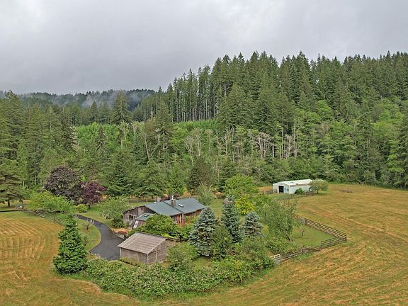 This coastal area home is nestled on 36± acres with 2000± feet of river frontage, mature timber, an open field, huge shop and a detached garage. The spacious home has an open floor plan with a unique arched sunroom and a partially finished daylight basement featuring a full bathroom, bedroom, lots of storage space, a workshop area. The garage has one closed bay and one open bay that could be used for a greenhouse via the skylight roof. The 1800± sqft cement floor shop has a sliding door and and a attached covered area. Perfect property for livestock or horses, w/ ample grass in the meadow. Stand of merchantable timber sits at back of property while open fields with a lushness finishing out the acres. Trout fish directly from the banks of the North Fork of the Siuslaw River, abundant wildlife plus the privacy. Just 15 miles into Florence for all services, shopping and the beach. A more perfect property between country living and coastal community cannot be found!