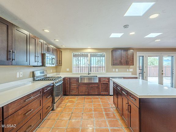 Beautifully Maintained Burnt Adobe Home with Amazing Catalina Mountain Views. Energy saving dual pane windows throughout.Enjoy a spacious remodeled kitchen (2024) that opens to family room and features quartz counters, center island with breakfast bar, gas range, stainless steel appliances, and shaker cabinets. 3 Bedrooms, 2 full baths, 2,022 sqft of comfortable living space, formal dining and living areas, large laundry room, and a workshop/storage area. Relax in the north facing backyard with paver patio, artificial turf, and modern corrugated metal fencing. Located adjacent to a wash for added privacy. No HOA.Here's all the great things thatn happened in 2024. Remodeled kitchen, new HVAC, removed carpet and installed laminated flooring and painted the interior of the home. In 2020, recessed lighting was added throughout the home and the sewer line to the street was replaced. Walking distance to Henry, Magee and Sahuaro schools.