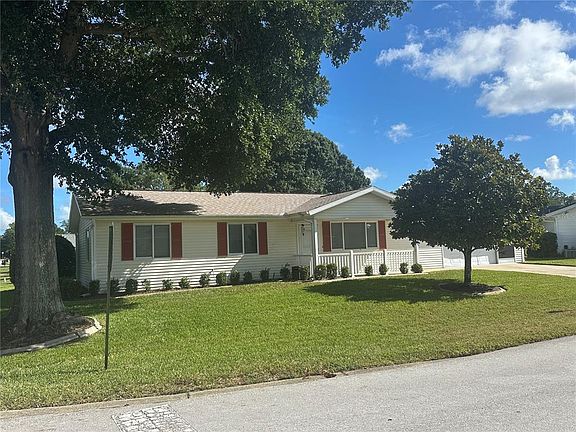 You'll fall in love with this adorable 2 bedroom, 2 bath home situated on a desirable corner lot with a beautiful shade tree in the front yard. Enjoy peace of mind with a new roof installed in 2003 and a spacious garage for parking and extra storage. Located in a vibrant 55+ community, you'll have access to three sparkling swimming pools, a modern fitness center and a clubhouse with a wonderful food. Oak Run offers endless activities and social events. You can also play golf or join the dog park for an additional fee. Whether you're looking to relax or stay active, this community has it all! It's perfect for year round living or a sunny seasonal retreat? Don't miss the chance to make this delightful home in a beautiful, safe and friendly community yours. Selling Agent is owner.