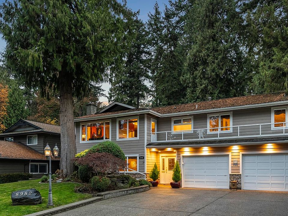 Set on a QUIET & TREE-LINED street, this meticulously cared for home delivers a rare mix of space, privacy, and potential. The 9000+ SQFT lot backs onto lush green space with landscaped gardens, a fenced yard, and a calming water feature. With over 3000 SQFT, this home offers inviting living rooms, a custom kitchen with skylights and heated floors, and a main floor bedroom with a full bath perfect for extended family. The upper level features four generous bedrooms including an elevated primary suite with a balcony. Upgrades include on demand HW, newer fencing, updated bathrooms with heated floors, and an organized double garage. Enjoy options for subdivision or future garden suites, strong nearby schools, and quick access to Hwy 91 and 17. Experience it firsthand, book your showing today