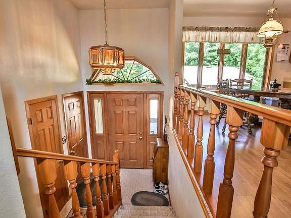 If Privacy is on your list, this is one to consider. The property is at the end of a dead end road, 3 acres of land, you can't see another neighbor from the home. Located in a beautiful bay with 450' of frontage. Desirable southern exposure and very moderate to the lake. The home is a 3+ bedroom with 3 baths, full wall fieldstone fireplace with a wood stove insert for high efficiency in the walkout lower level and a gas fire on the main level. Great 4 season porch lakeside. Large lakeside deck to enjoy at all times of the day. What every man is looking a 26x28 attached garage , you'll appreciate all the built in storage areas and the best is an additional 34x34 storage detached garage with metal roof , perfect to store boats, snowmobiles and lakefront toys. Come home to Booth lake, Never to late to Dream a New Dream!