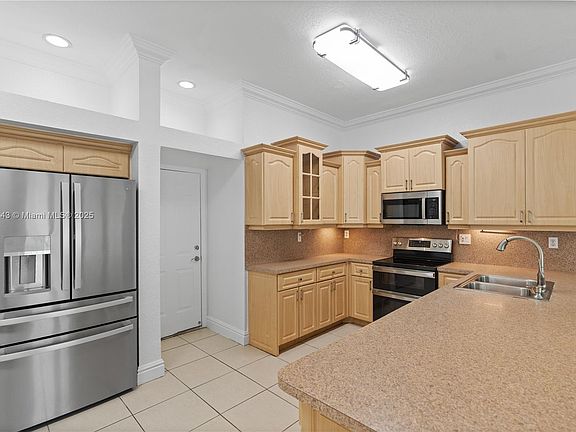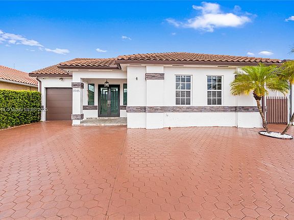Nestled in one of Miami Lakes most sought-after communities, featuring 4-Bedrooms 2-Baths approx 2,200 Sq. Ft. residence combines modern elegance with everyday comfort. This home impresses with vaulted ceilings, tile floors leads to formal living and dining areas. Formal dining area showcases exterior private patio for peaceful mornings. Spacious primary suite offers his and hers closets, a spa-like bath with a soaking tub, dual sinks and a seperate shower. Open chef's kitchen blends form and function with premium appliances, custom wood cabinetry, a breakfast area, large pantry, laundry/storage room, and a seamless flow into the sunlight filled family room with floor to ceiling glass doors. Outdoors, your completely pavered private oasis awaits-with an 8 person spa jacuzzi, outdoor sink & prep station, with two exterior TV's-perfect for entertaining and unwinding. Plus, interior and exterior security system provide home security. Impact windows, stamped concrete driveway, one-car garage, expansive attic for extra storage, newly painted and landscaped, every detail is crafted for comfort, convenience, and style. All nestled in one of Miami Lakes most charming and family-friendly neighborhoods. Great location minutes from highways, shopping, restaurants, entertainment, and multiple beautiful public parks with organized team sports and activities. Fantastic school district.
