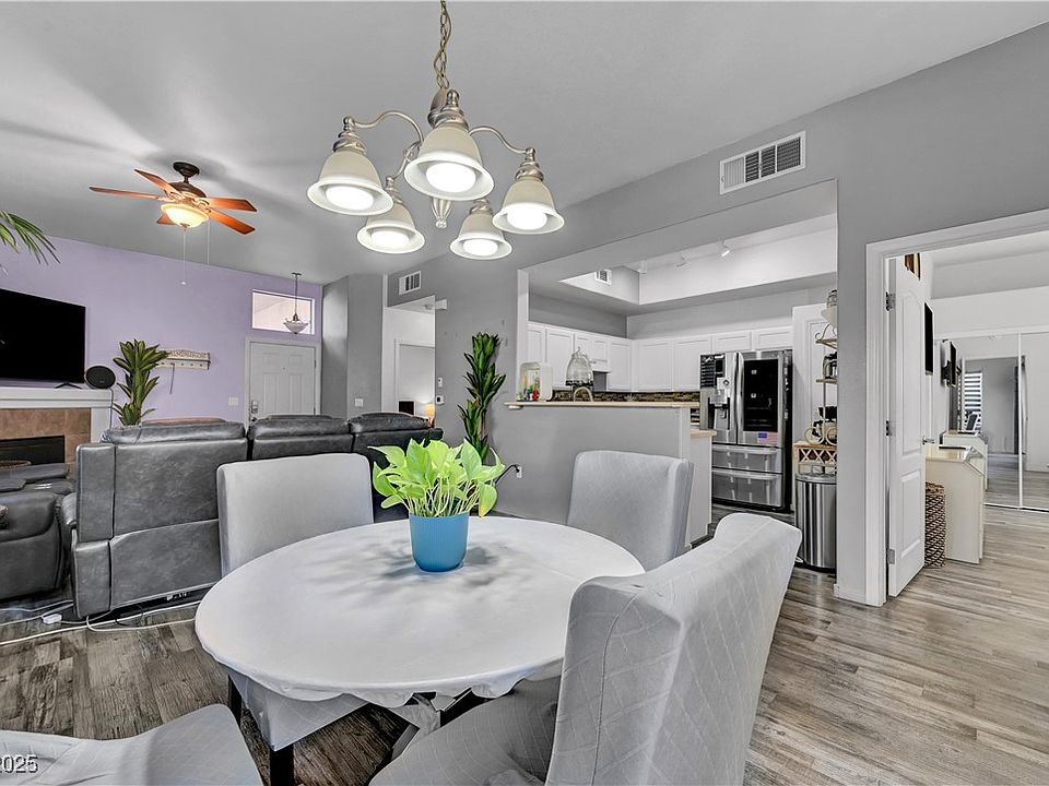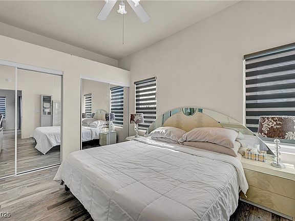 This charming first-floor luxury corner unit condo features a rare dual-primary layout with beautiful luxury vinyl plank flooring —each bedroom with its own bath plus an open, seamless flow from the kitchen to the dining and living areas. Upgraded remote controlled blinds throughout. Cozy up by the fireplace, or step out to your covered patio for morning coffee. Enjoy practical perks like assigned covered parking, remodeled guest bathroom, a newer HVAC only 2 years old, a new water heater, and a brand-new energy star rated with instaview stainless steel refrigerator. The community offers a sparkling pool, relaxing spa, and clubhouse—perfect for easy Las Vegas living in 89113. SCHEDULE your showing today!