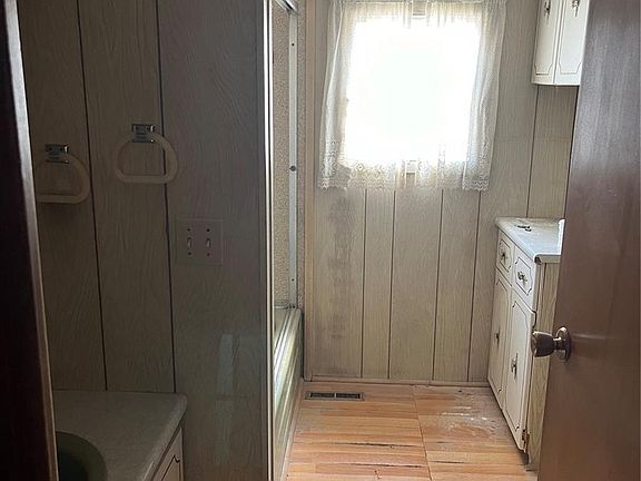 This 3 bed, 1 bath mobile home is situated on 4331 square feet of land, and is within a small community of land owned mobiles homes, which means no lot fee. Large 2 car garage with a paved driveway and is attached directly to the home. Fenced in backyard. The property will need some care and updates, with so much potential to make it your own. Close to highway and public transportation. Many restaurants and stores nearby. Water World within walking distance.