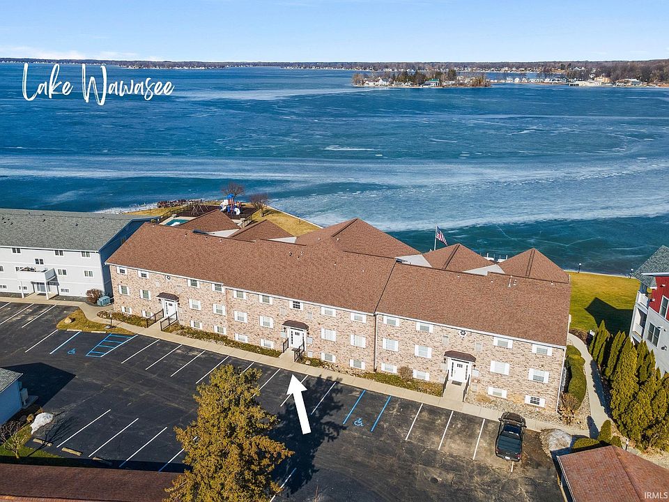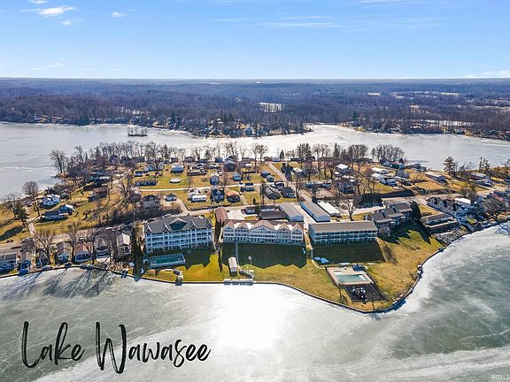 Once in a blue moon opportunity you don’t want to miss! Breathtaking full lake view from entire wall of windows & 3 sets of sliding glass doors to walk-out patio & direct walk out to lake—this fully renovated 1st floor condominium is a rarity & completely move-in ready! Practically perfect in every way, get ready to enjoy stunning sunrise & sunsets from the comfort of incredible 3 bedroom, 2 full bath condo w/ zero maintenance which means more time for you to make the most of all sports Lake Wawasee & community pool! Located on southern tip of lake not far from public access point, you have single car detached garage, boat pier space & 2 PWC slips plus storage at lakefront for all your lake equipment. Totally refreshed in 2020/2021, this open concept beauty has on trend finishes, new doors, trim & baseboards, all new kitchen & appliances, new washer/dryer, new carpet in bedrooms, plank looking tile in main living areas & all kinds of custom build-ins w/ storage cabinet & bench lakeside. Sure to “wow” from the moment you step inside the bright & welcoming atmosphere complemented by neutral color palette & soothing modern aesthetic, your life will feel like a permanent vacation here! Stylish kitchen has everything you need w/ abundant cabinetry, black SS appliances, hard surface counters & breakfast bar great for quick bites. All main living areas including kitchen feature gorgeous views of the water creating a peaceful & serene setting for all of life’s daily activities. Space for formal dining & entertaining in between kitchen & living w/ cozy family zone for lounging & watching TV. Expansive bonus area lakeside gets tons of natural light & amazing water vistas w/ room for games, seating, dining or simply relaxing! Luxurious primary also gets water views from closable window & boasts sleek en suite bath w/ tiled walk-in shower. 2 more good sized bedrooms w/ ample storage throughout & main shared full bath w/ tub/shower combo. This summer, you can take your pick—lake or pool? The choice is yours! Lake Wawasee is the largest natural lake in IN w/ 25 miles of shoreline at 3000+ acres & max depth of 77’ as well as a sandbar, 28 species of fish, lakeside dining options & fun all year round! Plenty of parking for guests, pet friendly w/ well kept common areas including a playground—allowing you the best of carefree lake living! Minutes from IN-13 w/ easy access to shopping, dining & groceries in downtown Syracuse. This one will not last long—take action today!