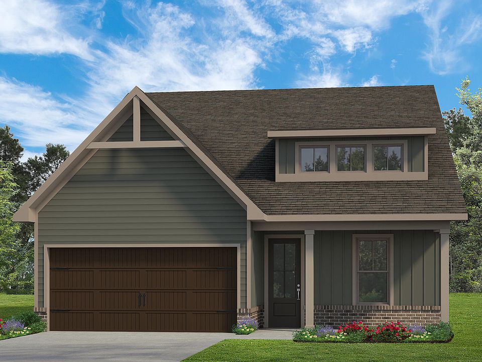 Inside The Daisy, possibilities are endless with an spacious, two-level floor plan for families. The exterior of The Daisy features a large, welcoming front porch tying together a beautiful arrangement of brick and board & batten siding. A two-car garage provides space to shelter vehicles with storage room to spare.