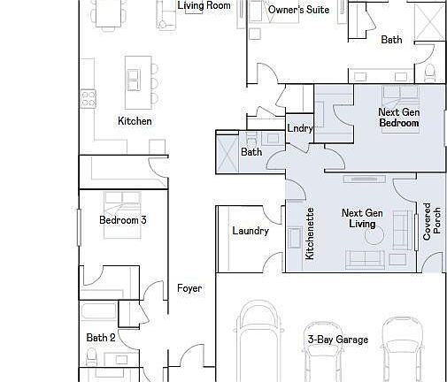 This new single-story Next Gen(r) home features a private suite with a separate entrance, living area, kitchenette, bedroom, bathroom and laundry, ideal for multigenerational households. In the main home, two additional bedrooms and a full-sized bathroom are located upon entry, leading to a spacious open-concept floorplan shared between a modern kitchen, inviting dining area and a comfortable living room. A luxurious owner's suite completes the home and provides a private retreat with a full bathroom and a walk-in closet. Also included - GE(r) stainless steel appliances, Rinnai Tankless Water Heater, Granite Countertops, Taexx(r) built-in pest control system, 2'' faux wood blinds, LED lighting and so much more! move-in ready and waiting for you!