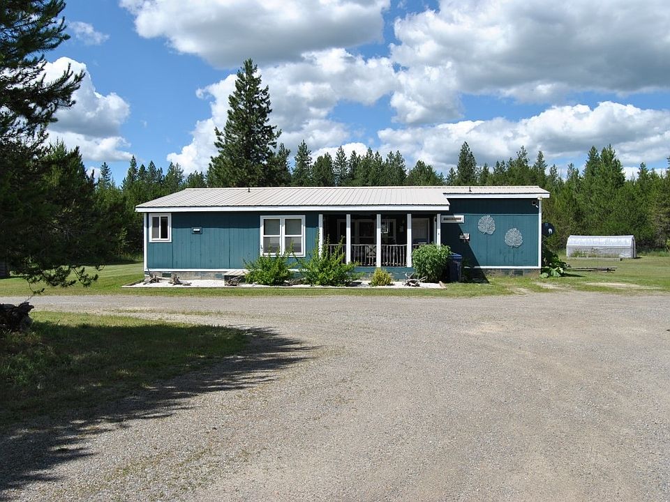 Beautifully located triple wide home. Property is 4.86 acres 100% usable for horses etc. Has gravel pad for rv parking or a shop, 10'×20' green house, chicken coup w/power, fruit trees, wood shed and 12'×16' storage shed /work shop with upper storage. Solar yard lights as well. Inside is much larger than appears from the outside. Large living room with corner wood stove and sliding glass door to back covered deck and watch the wildlife. Spacious kitchen with pantry and plenty of cupboards. Breakfast bar separating the dining room. Master bedroom features a large walk in closet. Master bathroom has garden tub desperate from the shower. The other two bedrooms and the house bathroom are on the other end of the house. Both wood and forced air heat. Front and back covered decks and 5 yr old metal roof w/ vented ridge to eliminate penetrations through the roof.