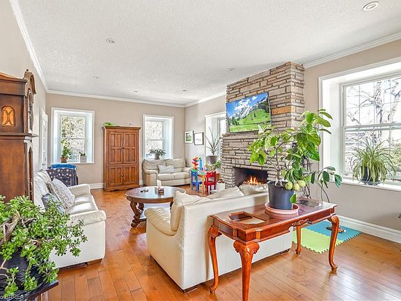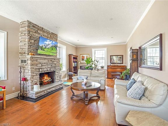 A Beautiful Cobblestone Home on a Large Property! A prominent Paris home known as The O’Neail Residence that was built by Charles O’Neail in 1861, with all 4 walls constructed using cobblestone instead of the 2 or 3 walls that was typical at that time due to its high cost. This impressive home is set back from the road on a 0.69 of an acre lot and features a covered front porch with an inviting entrance, a huge living room for entertaining that has a 10’4” high ceiling with pot lighting, crown molding, hardwood flooring, and lots of natural light through all the windows, a formal dining room for family meals, a bright eat-in kitchen with tile flooring, an updated 4pc. bathroom at the front of the house that has tiled walls and a modern vanity, spacious bedrooms with more hardwood flooring and crown molding, another bathroom at the back of the house that doubles as a convenient main floor laundry room, and there is a large bedroom with a vaulted ceiling and patio doors leading out to the deck in the private backyard(the bedroom is currently being used as an office and workspace). The basement boasts a cozy recreation room with a walk-up to the backyard, a den, and plenty of storage space. You can relax with your family and friends around the inground swimming pool in the private backyard with high cedars that run across the back of the property, and the detached garage will be perfect for a hobbyist. Updates include a metal roof in 2019, new furnace in 2015, updated vinyl windows, new pool floor and pool liner in 2021, and more. A spectacular home that’s just up the road from the Paris Fairgrounds and close to schools, parks, trails for walking and biking along the river, shopping, and fine restaurants. Book a private showing before it’s gone!