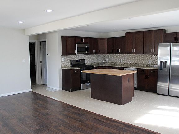 Newly renovated 3 bedroom, 2 bath home. Open concept. New hardwood floors and recess lighting as you enter the home. Nice kitchen with granite counters and an island with numerous cabinets. Fresh paint throughout the entire home. Carpeted basement stairs lead to a partially finished basement. There are block windows in the basement and extra storage space. Fenced backyard.