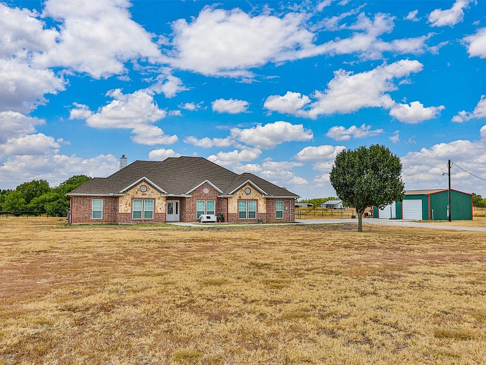 WELCOME HOME! GET OUT OF THE CITY! Located in the very desirable Valley View School District, this gorgeous CUSTOM HOME sits on 5 acres boasts 5 bedrooms,2 baths, Open floor plan, Split Bedrooms, Wood burning stove, jetted tub, walk-in shower, Double ovens, master bedroom has walk-in closet, beautiful floors throughout the home, laundry room has deep sink and 2 car garage where a pickup and large SUV can be parked! The Dining Room was converted into a 5 Bedroom but could be easily converted back to a Formal Dining Room! The Shop has 2 overhear doors, storage and a half bath! Durable Black Pipe fencing surround the home and leads to the heavy treed part of the property!! So much room for four wheeling and all your outdoor sports!!Property is located minutes from I 35 and WinStar. Also, you are minutes from Lake Ray Roberts for all the boating and fishing fun!!
