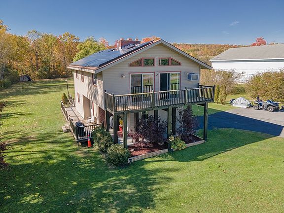 Unique 4 bedroom, 2 bath home located in the town of Princetown. Soaring cathedral ceilings with knotty pine paneling accent the living room with an abundance of windows that provide lots of natural light, wood burning fireplace. Enjoy the front upper deck with views of the changing leaves, updated flooring, large rear deck for entertaining in this quiet but convenient location. This home is set on a level 1.63 Acres for your outdoor pleasure and includes an ultraviolet water softening system, solar panels for energy efficiency and pull down attic for storage, low taxes. Make this home yours today!