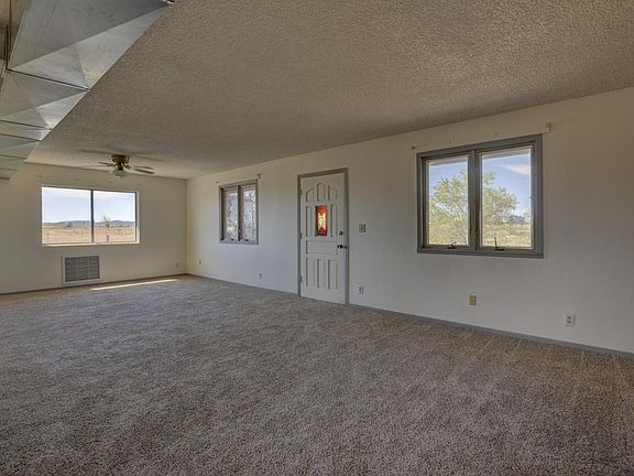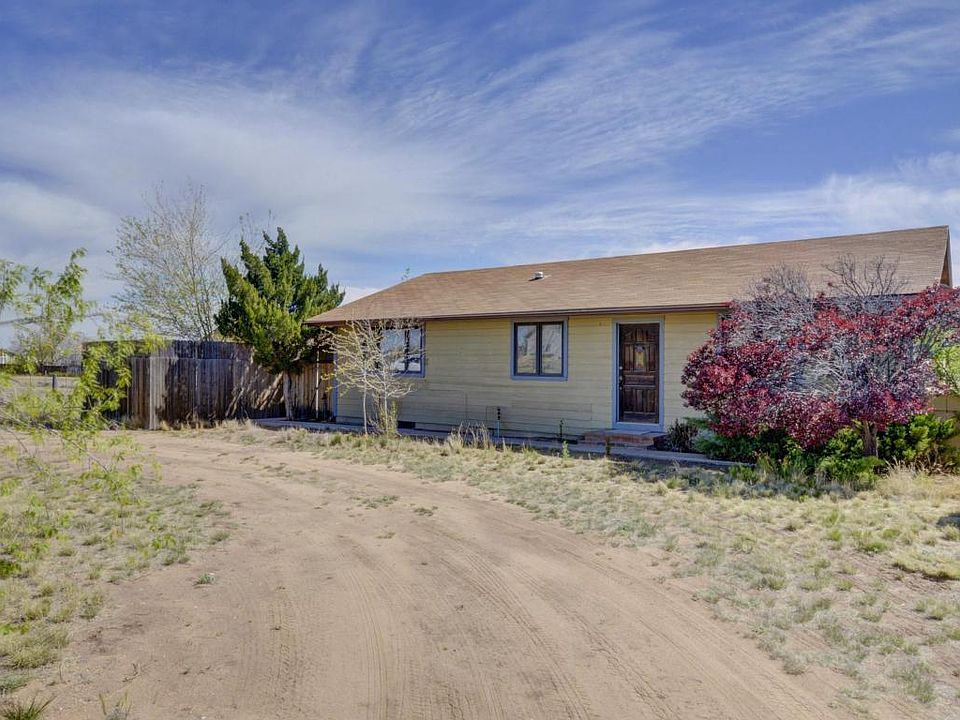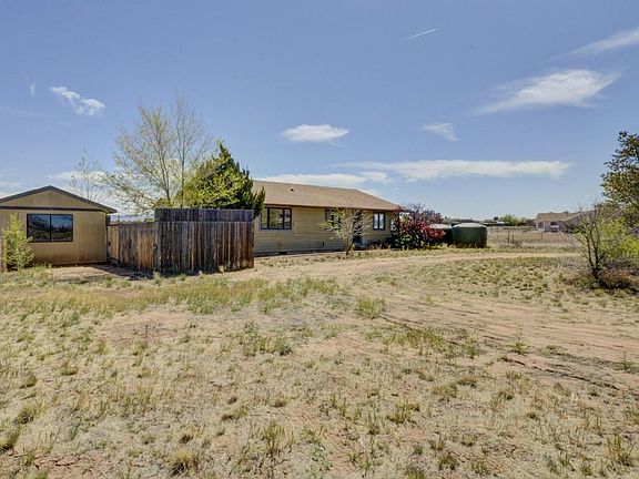 Home that sits on 2.49 within Town of Chino Valley. Practically live off the grid with solar power and hauled water! House has new carpet and a fresh coat of paint on the interior. Kitchen is spacious with island, electric stove, and refrigerator. Kitchen is in need of your cabinet doors to be complete. Nice bathroom with step in shower. Enclosed sunroom off of 2nd bedroom. Large shed off of private courtyard. Chicken coop, green house and water storage containers, some being used as cisterns, and hauled water. Land is partially fenced. House sits on 2.49 acres