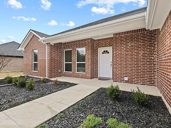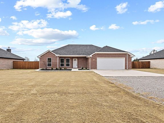 Need a home & a yard that are not to big but not to small? Then take a look at this 3 bedroom, 2 bath, brick home on a half an acre with a post tension slab, a 2 car garage and a large back yard surrounded with a wood privacy fence. The home has an open & split floor plan, a wood burning fireplace, a quaint kitchen with a breakfast bar, granite counter tops and SS appliances. The entire home has vinyl plank flooring, ..... that's right there is no carpet in the home. The primary suite has a vaulted ceiling, a view of the back yard, a walk-in shower, 2 sinks and 2 closets. There is a concrete sidewalk from the driveway to the front door, rain gutters, covered front & back porches and room for landscaping. The private back yard is extra large and offers great space for pets, outdoor activities or room for a workshop.