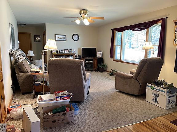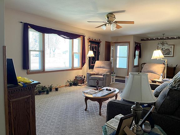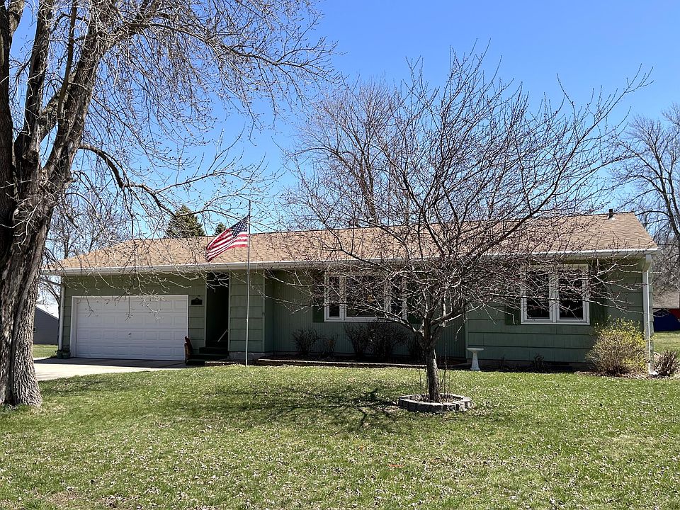 Comfortable 3 bedroom, 2 baths, 1 story home on a corner lot, near the edge of town. Double attached garage. The home has some of the original hardwood floors. Semi open concept with the dining room open to the living room. The kitchen is user friendly. The stackable laundry is in the kitchen now but it can be moved to the basement if wanted. Nice size living room with a large picture window. The main floor has 3 bedrooms and a bath with a walk-in shower. Two of the bedrooms and the dining area have wood floors. The basement has a good size family room. There are 3 storage rooms in the basement. One could be considered a bedroom with the installation of an egress window. The basement does have a toilet and a shower. Nice yard with some planting beds.