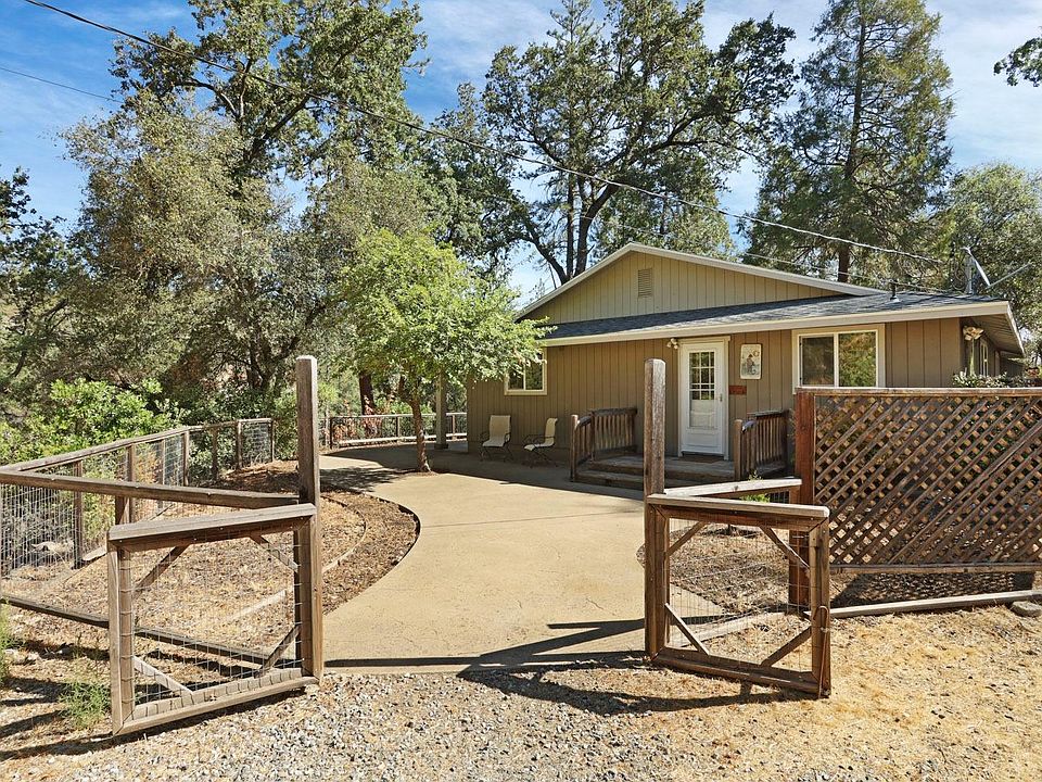 Beautiful hillside cottage with 6 acres of forest and hillside with plenty of modern upgrades. Driving up to this amazing home, you will be surrounded by the natural hillside and forest. The path leads you right up to your own private driveway to a 2bed, 1 bath sanctuary with over 1200 sg ft and amazing views. There are lots of quality upgrades throughout including new paint, flooring, stainless appliances, indoor laundry, washer, dryer and a beautiful wrap around and enclosed patio area. Perfect to sit outside and have your morning coffee or have a private area to entertain your company. The home has space for RV parking and more room to park any of your other toys in the 3 car detached garage. The Generac generator will ensure you have power all year long. This little treasure is priced right and move in ready. Close to California Caverns and recreational lakes.