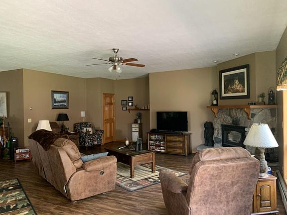 Beautiful three bedroom, 2.5 bath home featuring an office, fireplace with wood insert, beautiful master bedroom, large master bath with Jacuzzi tub, walk-in tile shower, huge walk-in closet, new flooring through most of home, freshly painted, new steel roof, garage is insulated, has drywall, and heated. The yard is professionally landscaped and has an irrigation system. Nice work shop that is heated and insulated with attached garage with electric opener. For the hunter there is a new buck pole with electric winch and a very nice deer blind. This home is beautiful!