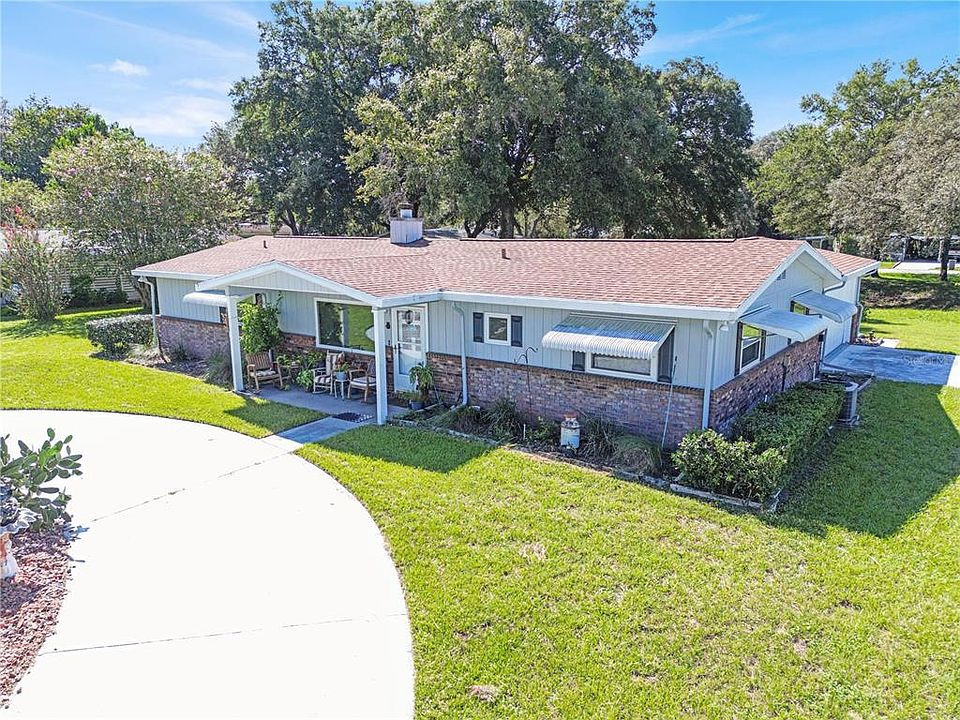 Introducing this inviting 3-bedroom, 2-bathroom home in a vibrant 55+ community, boasting a tranquil .22-acre lot free from lot fees and with the ownership of your land. Beyond the welcoming curb appeal, this residence features a spacious 2-car garage, ample parking for 8, and an exclusive screened area for a golf cart. With a handicap-accessible bathroom, an updated kitchen, and a comfortable den/formal dining room, this home is designed for convenience and modern living. The expansive living room comes with a working fireplace, while the lush, floral screening ensures privacy from the road. Hot water heater just installed 12/16/23, New electrical panel installed 1/3/24. Roof Replaced in 2018, gutter guards, and fruit trees add to the practicality of this corner lot, with only one immediate neighbor. Enjoy the tranquility and comfort of this delightful property, with a modest monthly fee of $138.